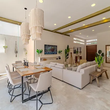 Located approximately a 10-minute drive from Parque Nacional de Tulum, the 4-bedroom Villa Tulipan offers a terrace with views of the garden. Offering an outdoor pool area, the accommodation invites guests to visit Tulum Archaeological Site, located a 10-minute ride away.
